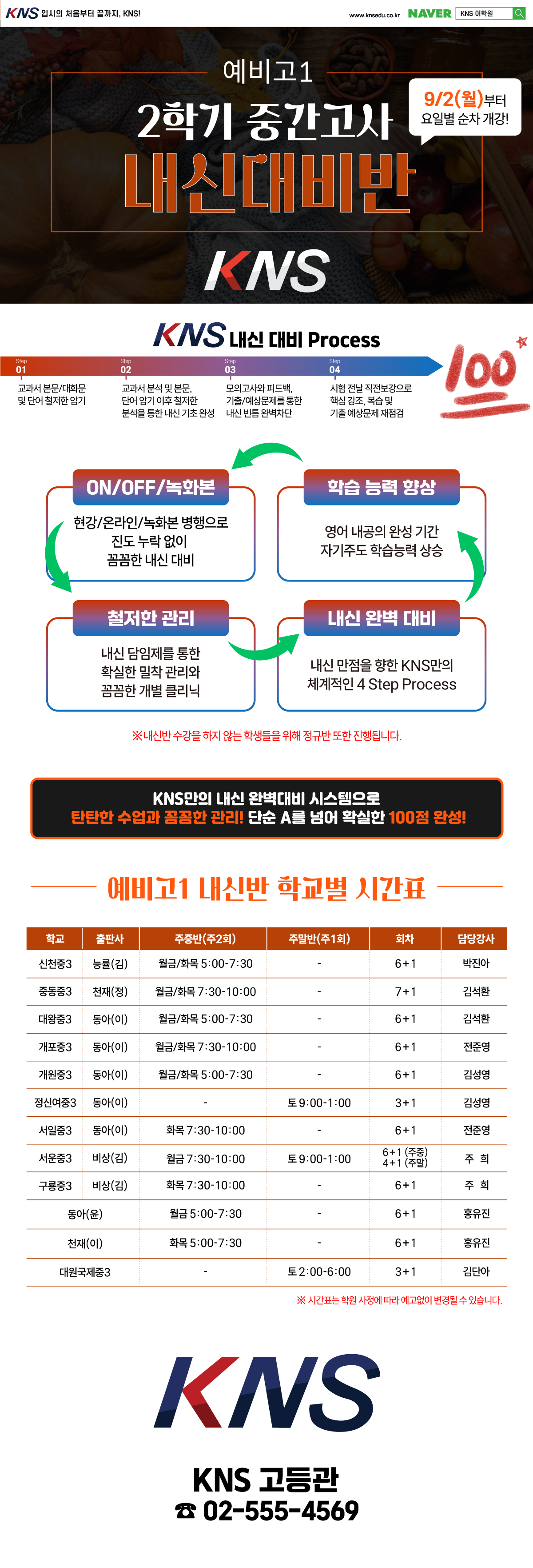 | 다음 | [KNS 중1] 2024 중1 2학기 내신 완벽대비반 안내 | 2024-08-16 |