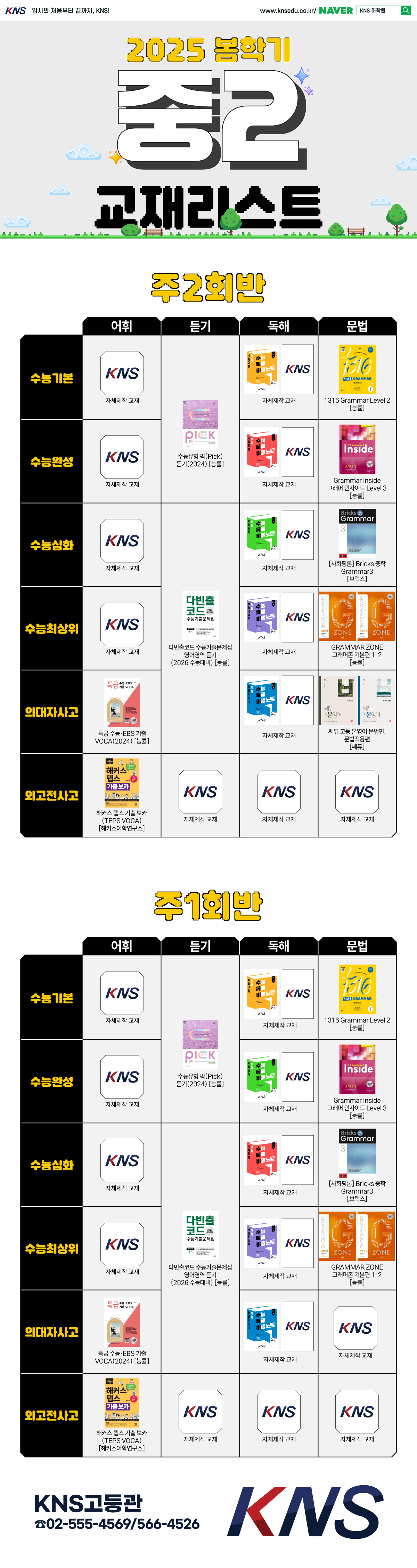 [중2] 2025 봄학기 중2 교재리스트 안내