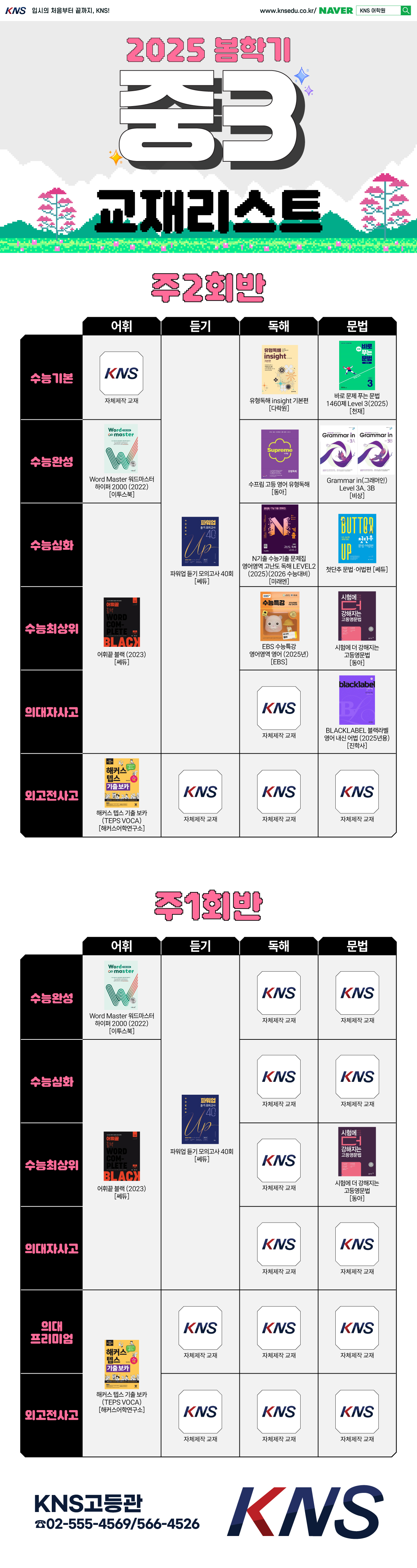 [중3] 2025 봄학기 중3 교재리스트 안내