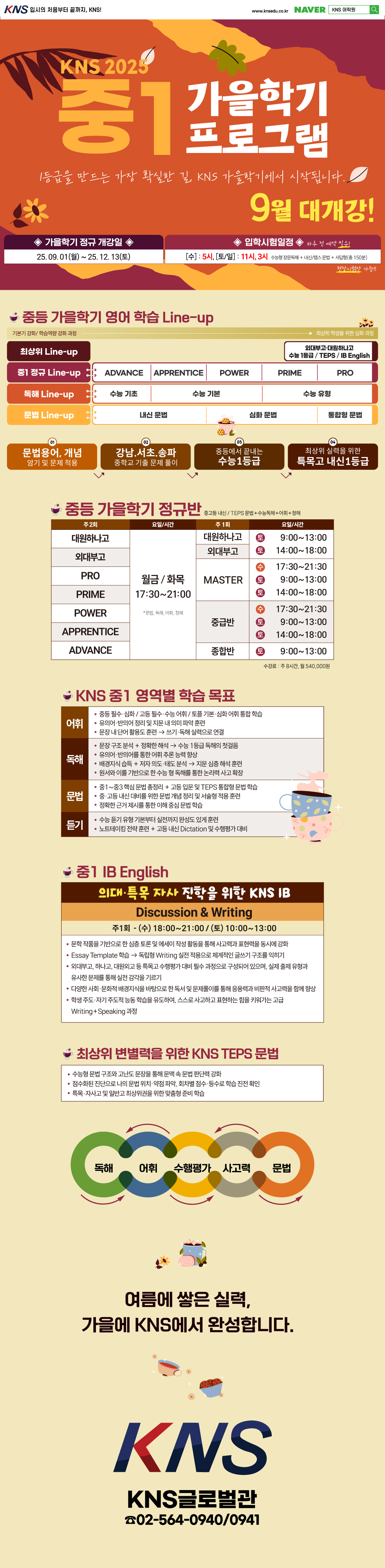 | 제목 | [중1] 2025 중1 가을학기 정규프로그램 안내 | ||||